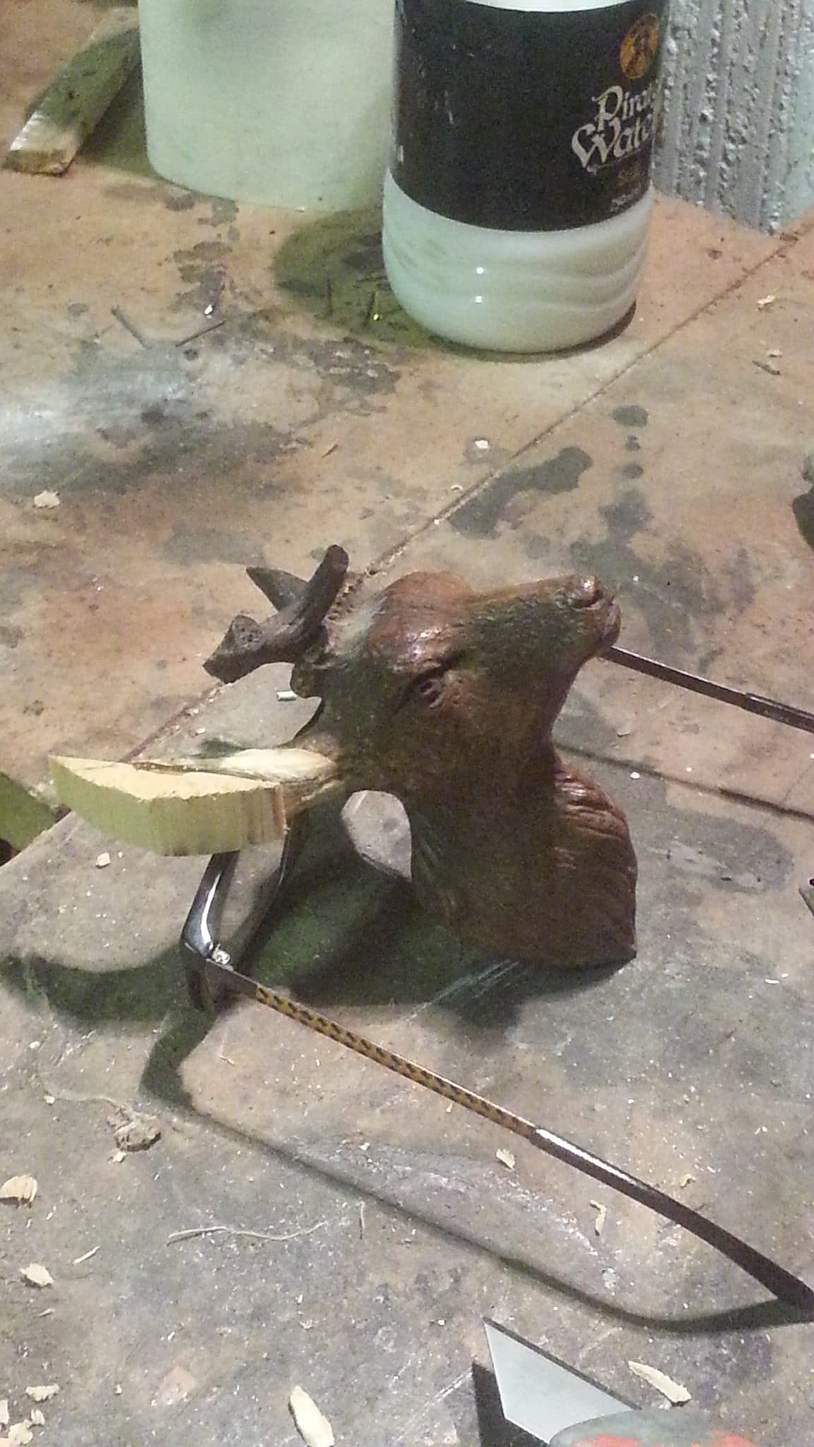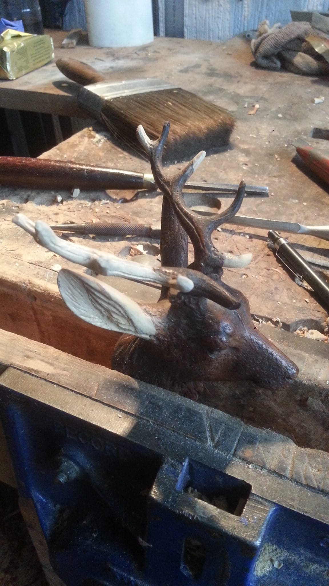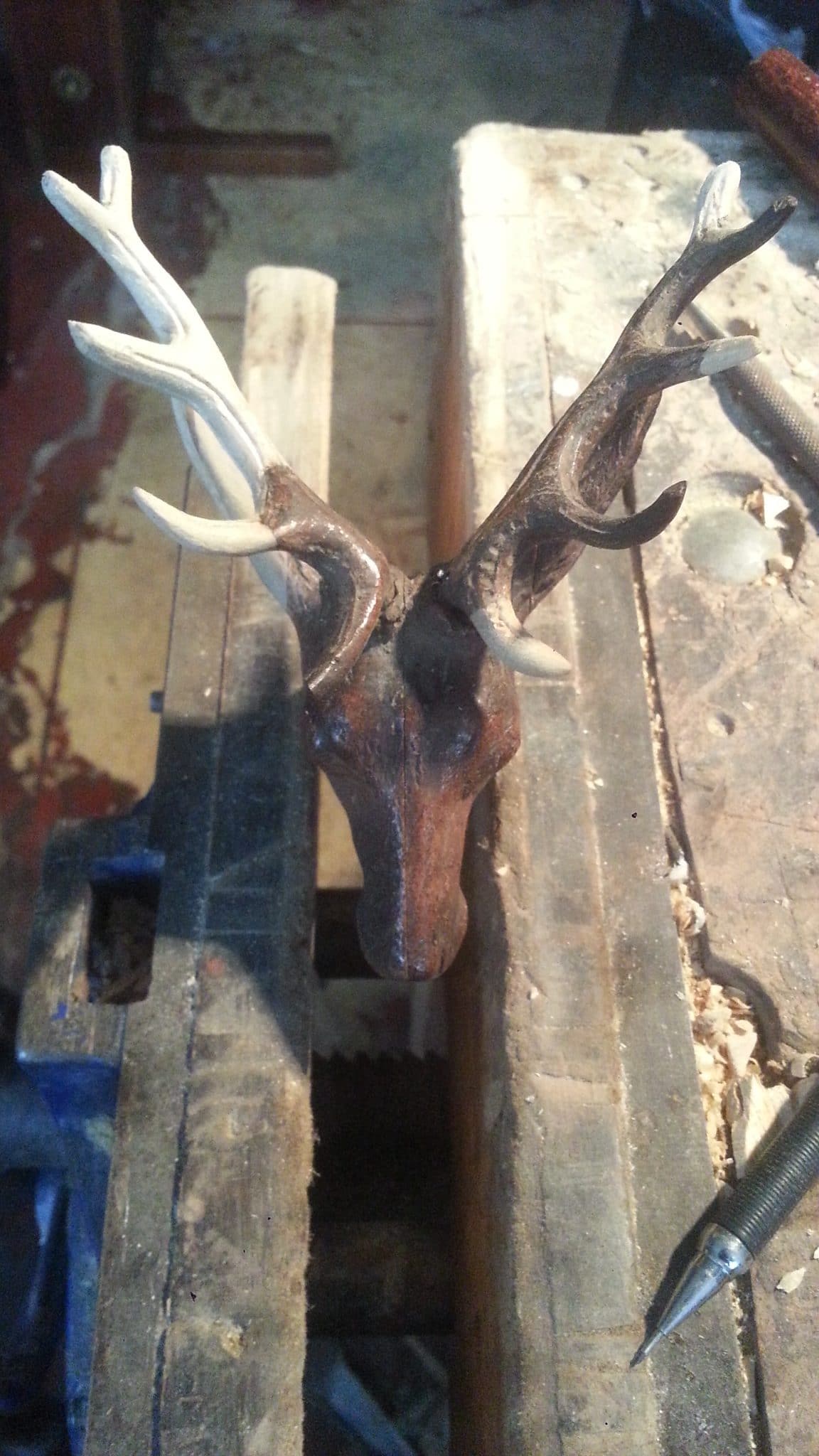 Reconstruction of broken antlers on bust of stag