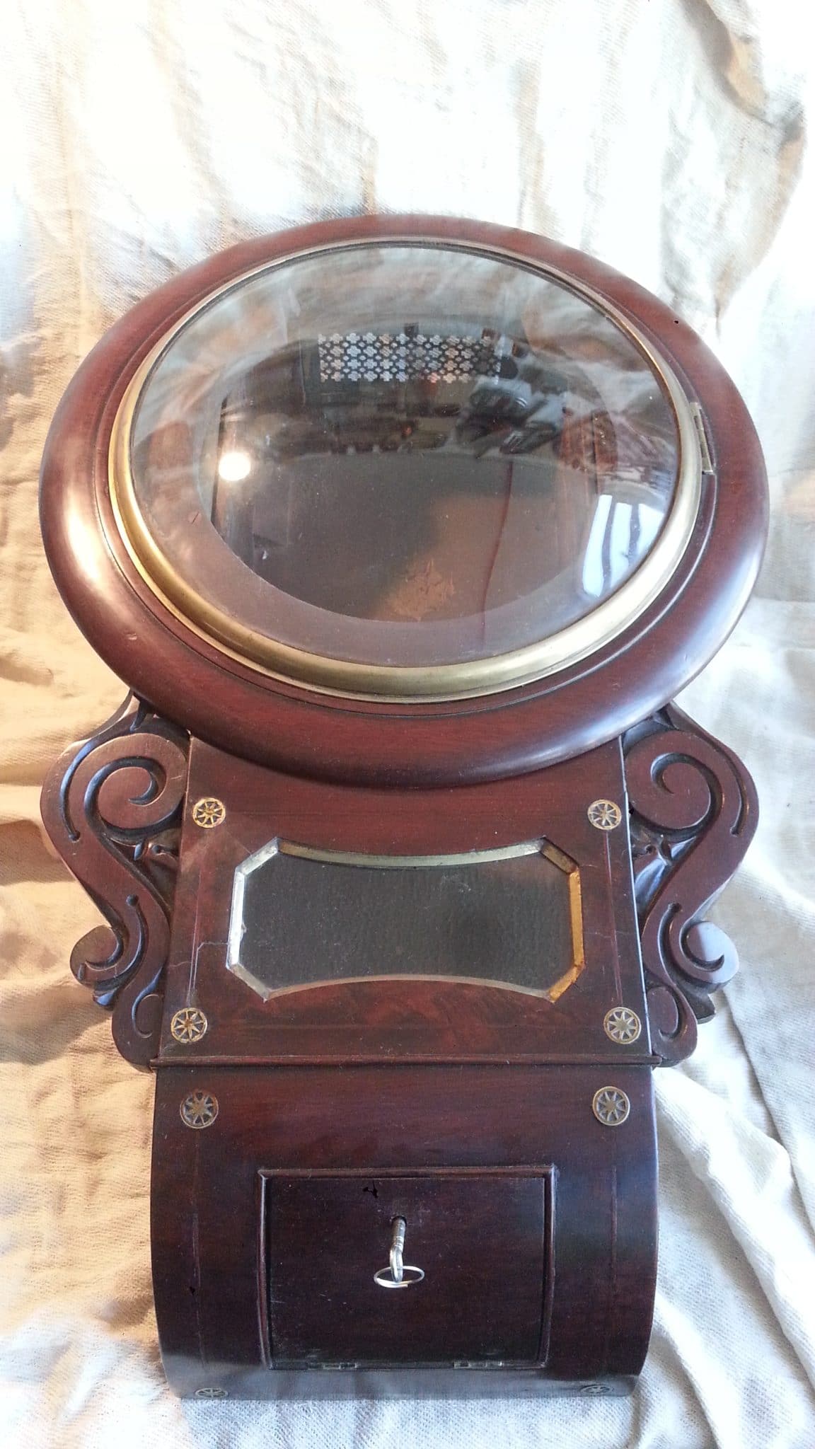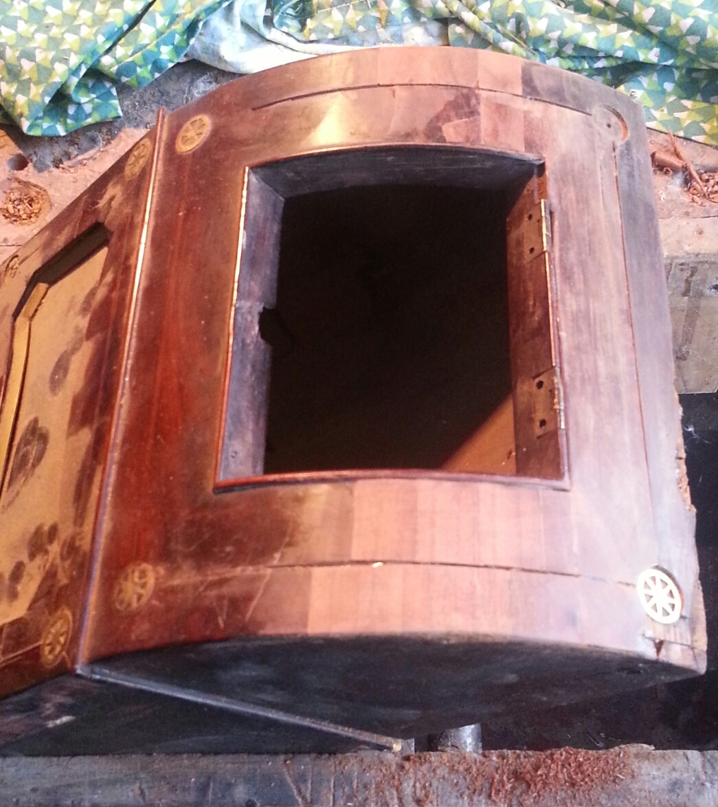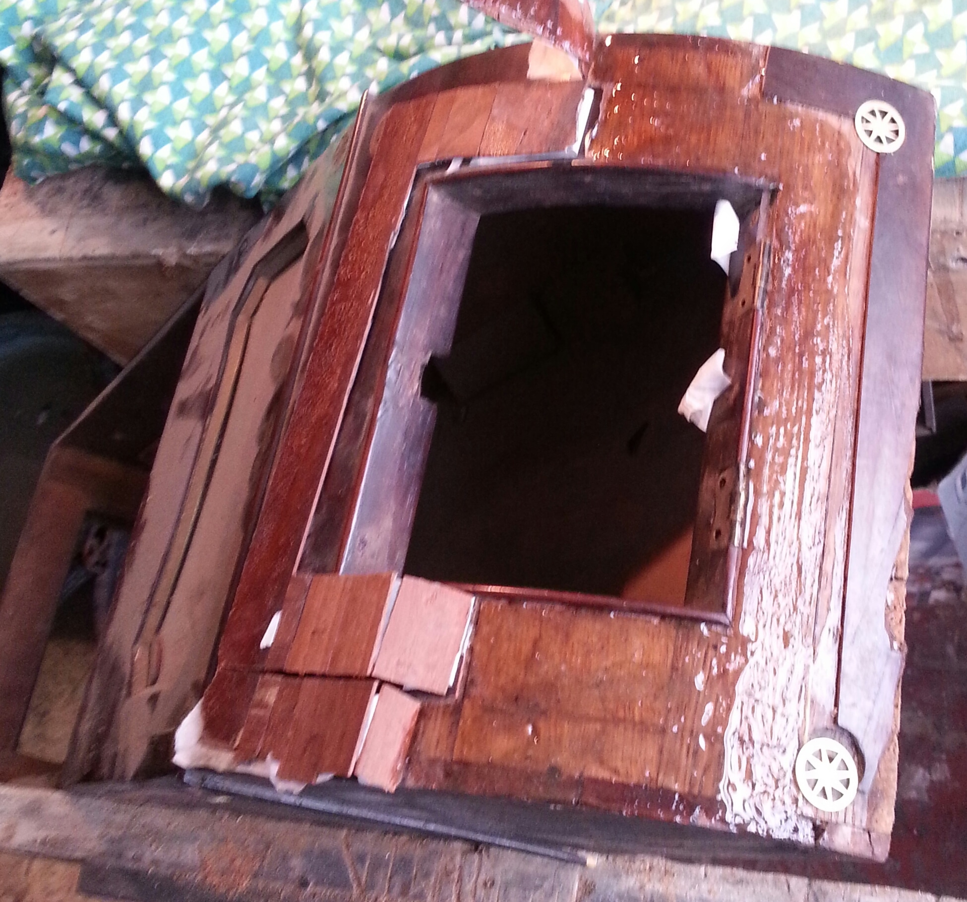 Restoration on 19th century dial clock constructed in mahogany veneer