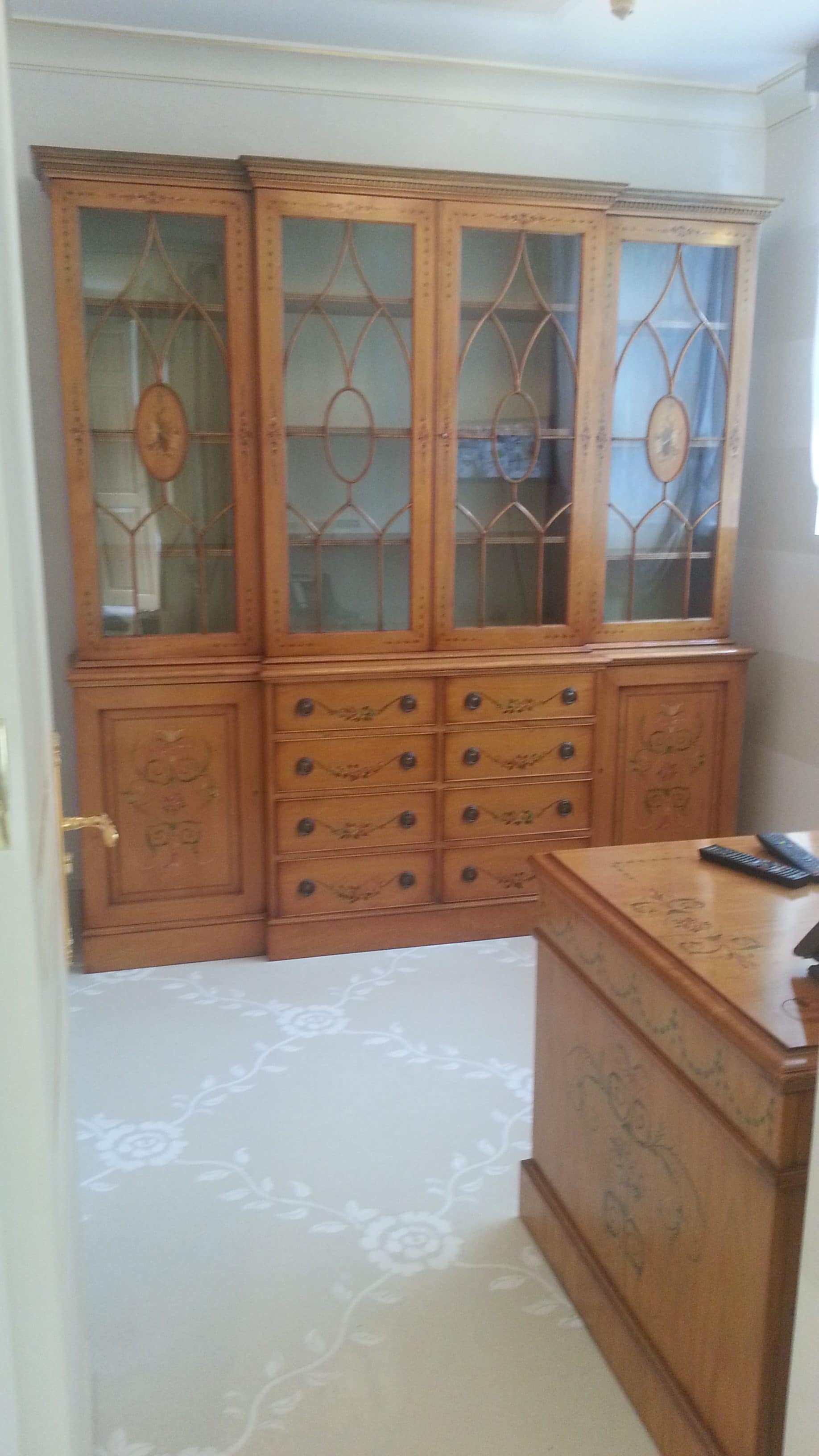 Restoration carried out on a large bookcase and knee-hole desk