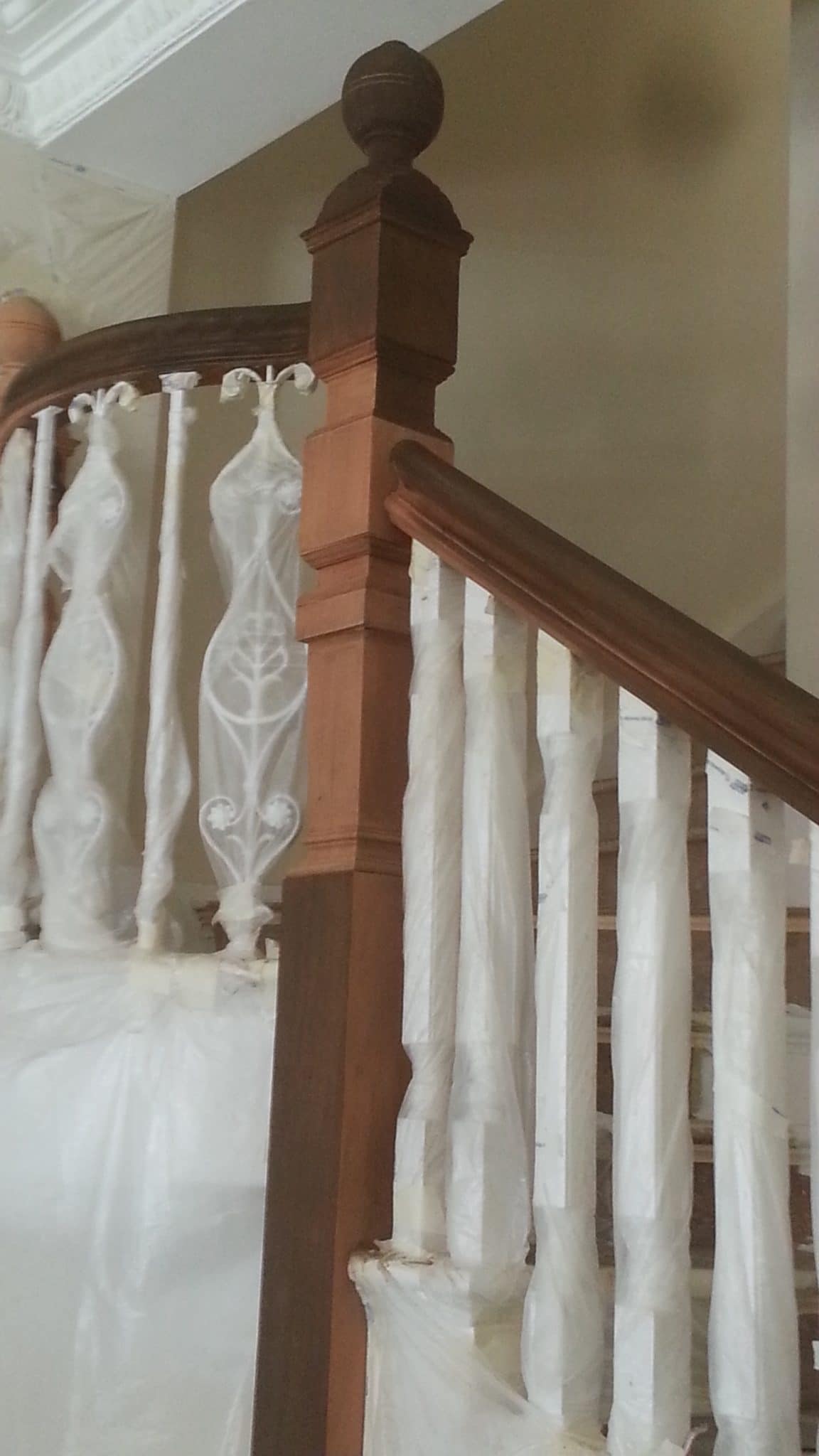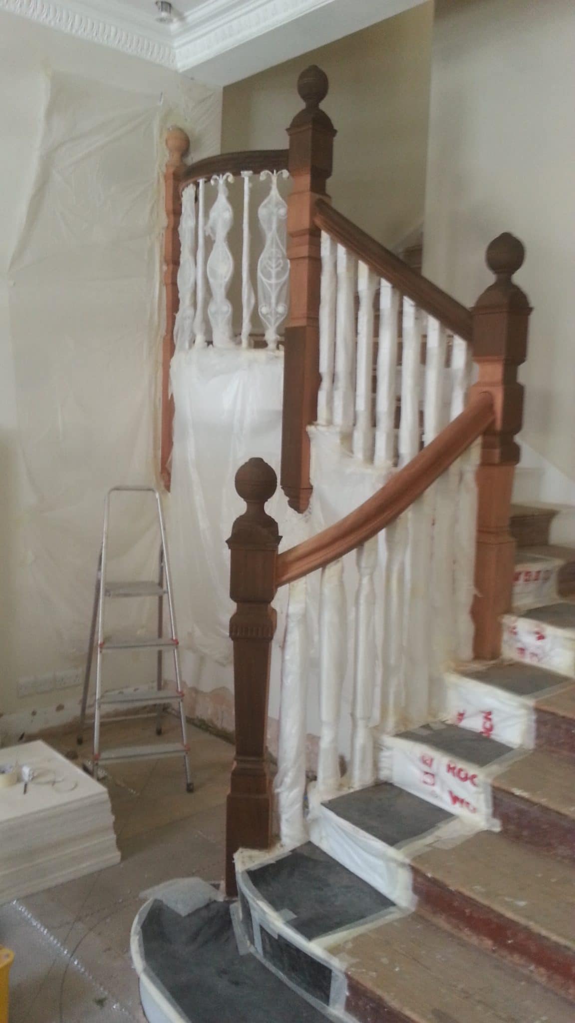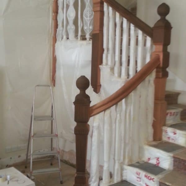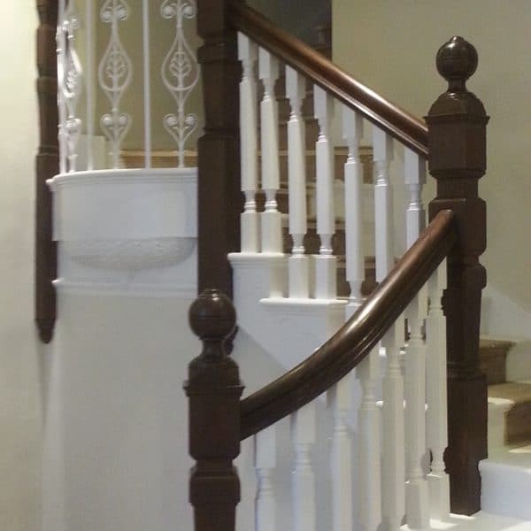 Brown mahogany bannister French polished by hand