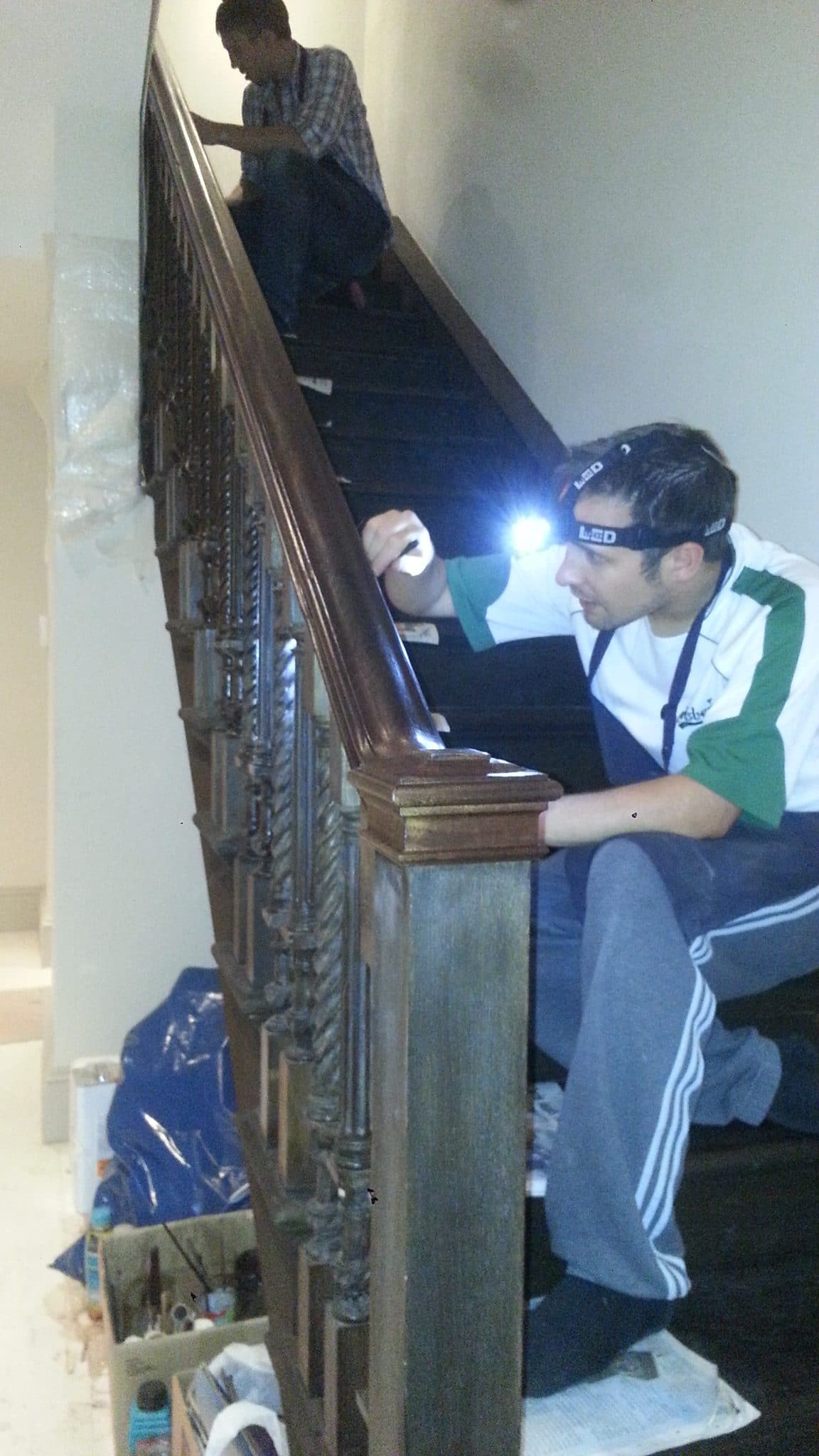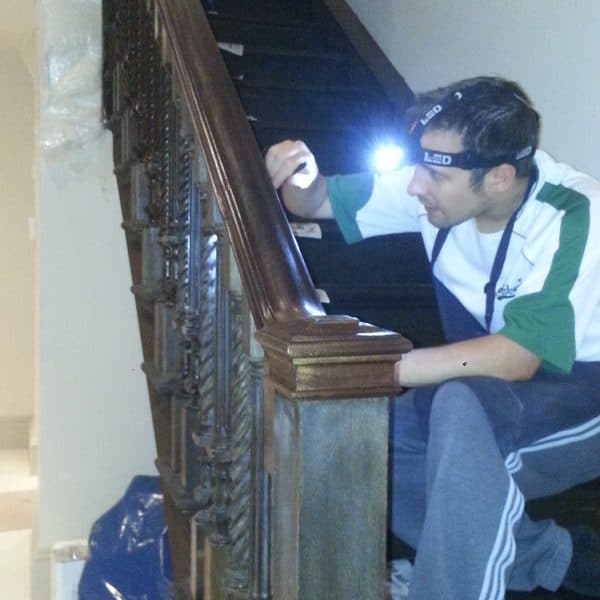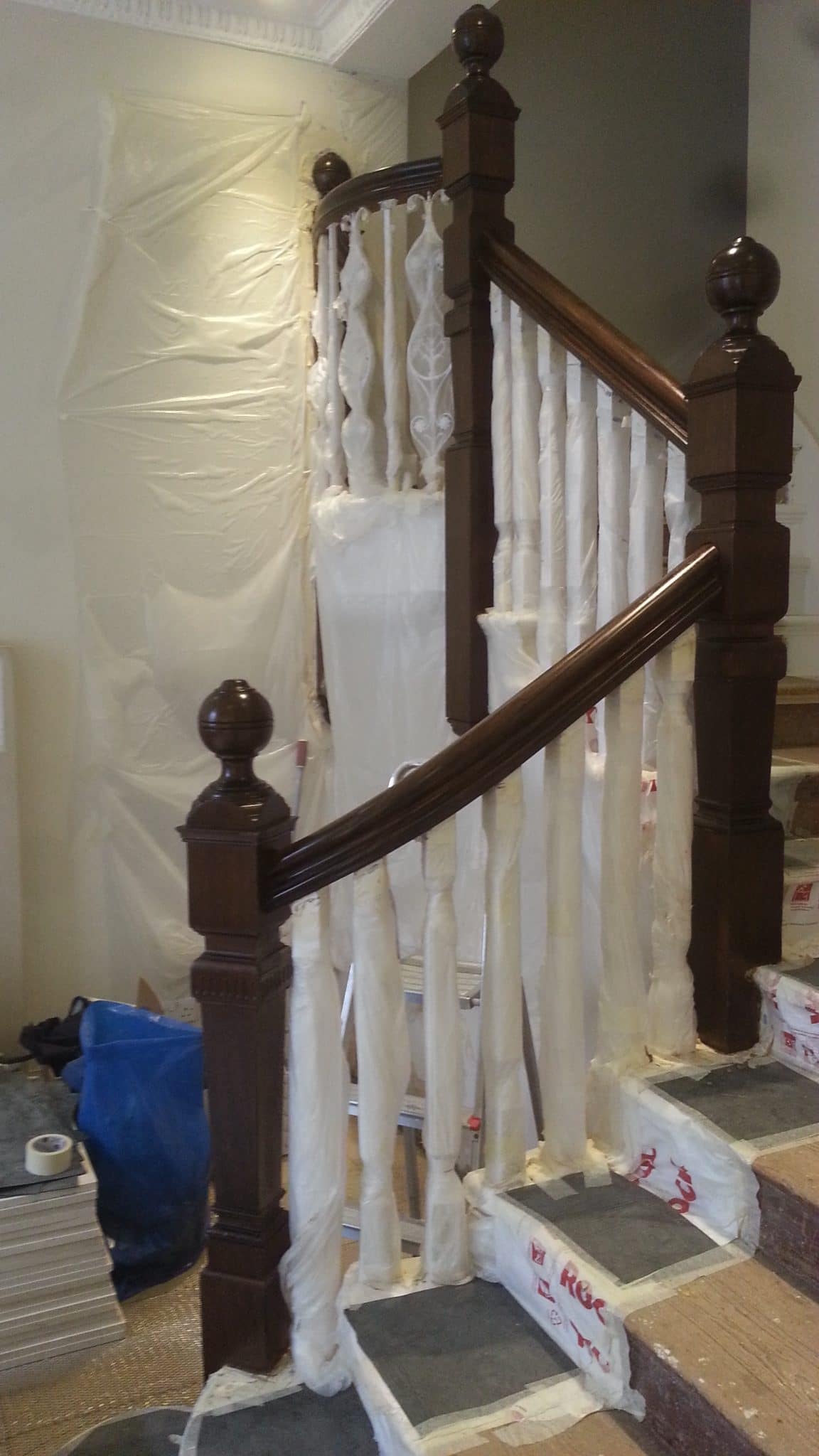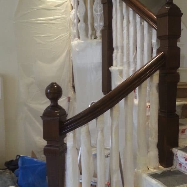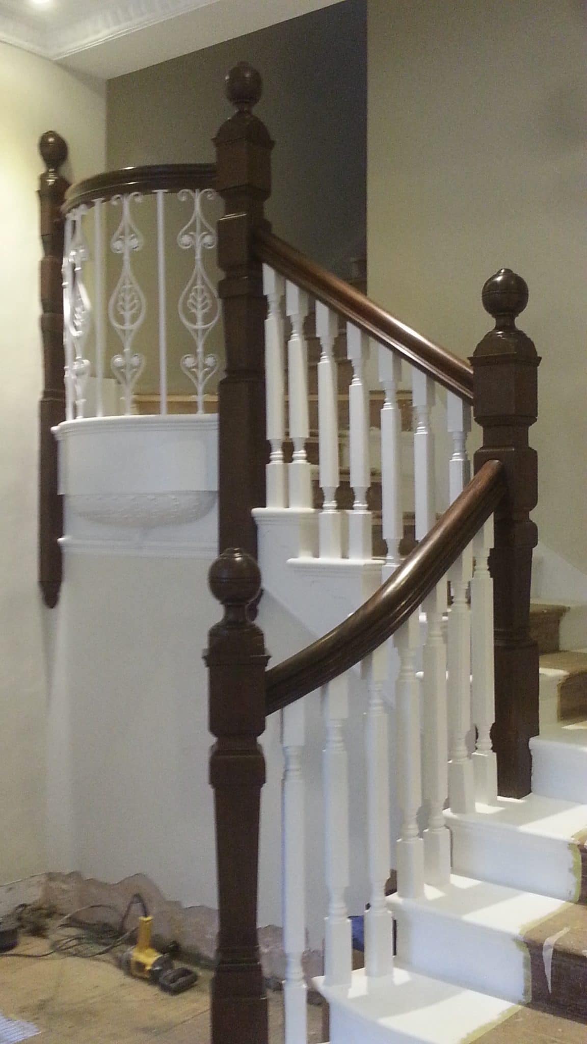 Brown mahogany bannister French polished by hand