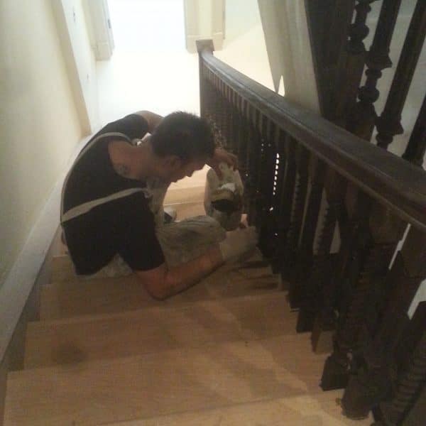 Staining and lacquering of new hardwood flooring