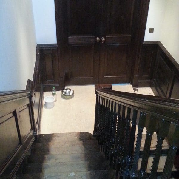 Removal of paint and French polish from pine paneling in Country Estate
