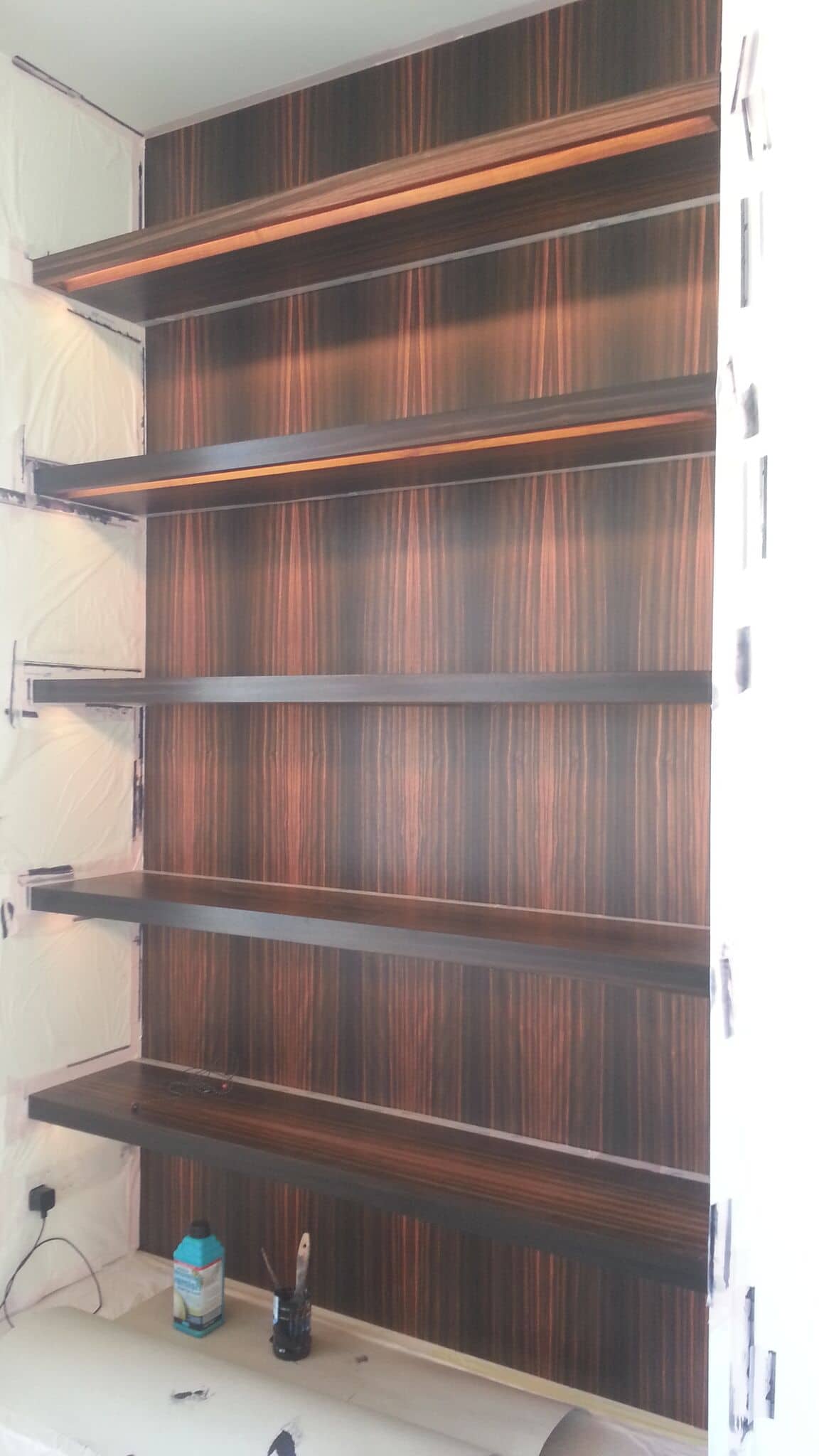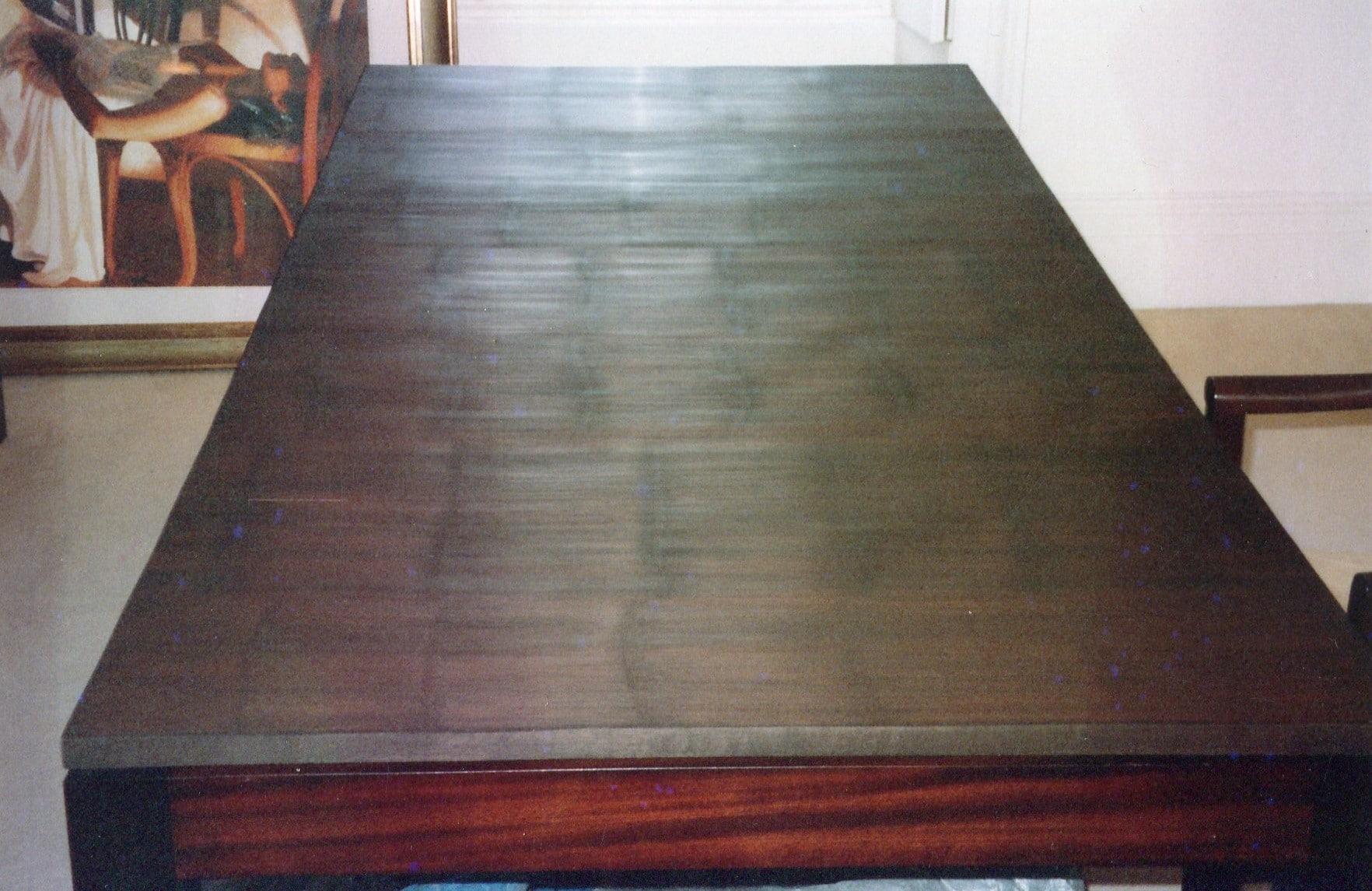 Restoration and French polishing on 20th century Boardroom paneling veneered in Australian walnut