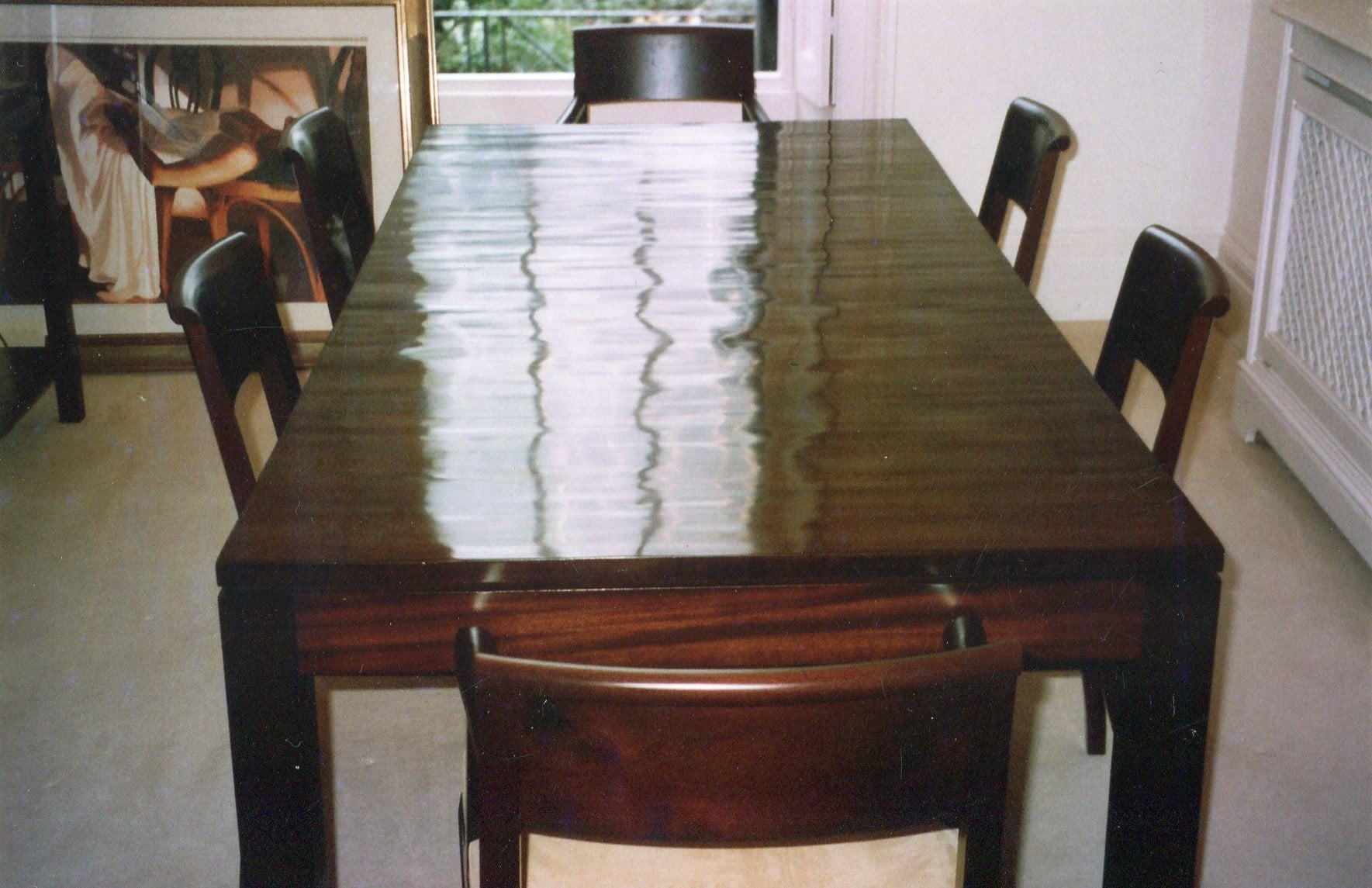 French polishing of contemporary bamboo-top dining table